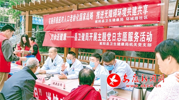 紫陽縣城關鎮環城路社區與紫陽縣衛健局聯合開展“義診送健康”主題黨日活動。儲茂銀 攝