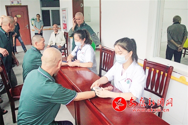 白河縣構朳鎮衛生院工作人員到構朳中心敬老院進行義診。方正 攝