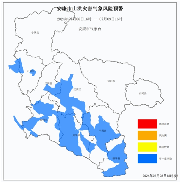 本網(wǎng)訊 7月8日16時(shí),安康市水利局、市氣象局聯(lián)合發(fā)布山洪災(zāi)害氣象風(fēng)險(xiǎn)預(yù)警:預(yù)計(jì),7月8日16時(shí)至7月9日16時(shí),漢濱區(qū)中部、漢陰縣東部、石泉縣中部、紫陽縣、嵐皋縣、平利縣中部、鎮(zhèn)坪縣中南部有可能發(fā)生山洪災(zāi)害(藍(lán)色預(yù)警)。