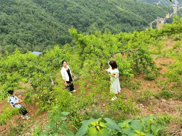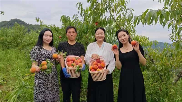“哇!這桃子太多了,齊天大圣來了都舍不得走。口感不錯,連蜜蜂都喜歡吃。現在兩三萬斤黃桃已經成熟,急待銷售,歡迎廣大朋友們前來采摘!”“這漫山遍野的桃子,個頭大、味道鮮美,急待銷售,在這里采摘桃子,不僅可以吃到新鮮的桃子,還可以欣賞到美麗的風景”……賢話多多、錦園花開英子、王蓉顧不上休息,走進桃園,通過直播、抖音、短視頻幫助陳顯攀推銷黃桃。當天,網上下單訂購300余公斤,詢問地址上山采購的人也陸續到來,陳顯攀焦躁的心情得到緩解。