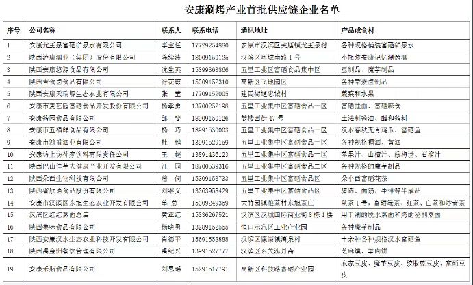安康涮烤產業首批供應鏈企業名單(排名不分先后)sZf安康新聞網