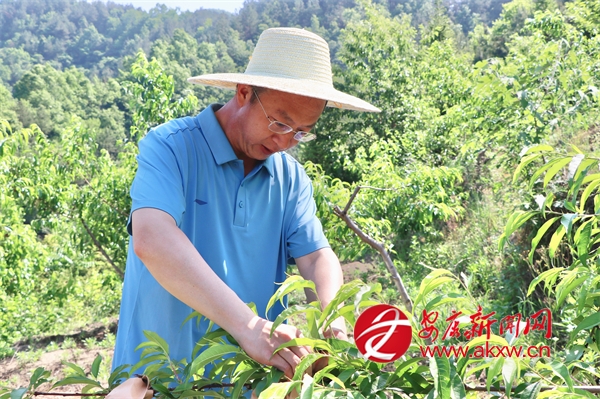 陜煤集團派駐漢陰縣雙河口鎮幸和村第一書記高勇正在給桃樹套袋