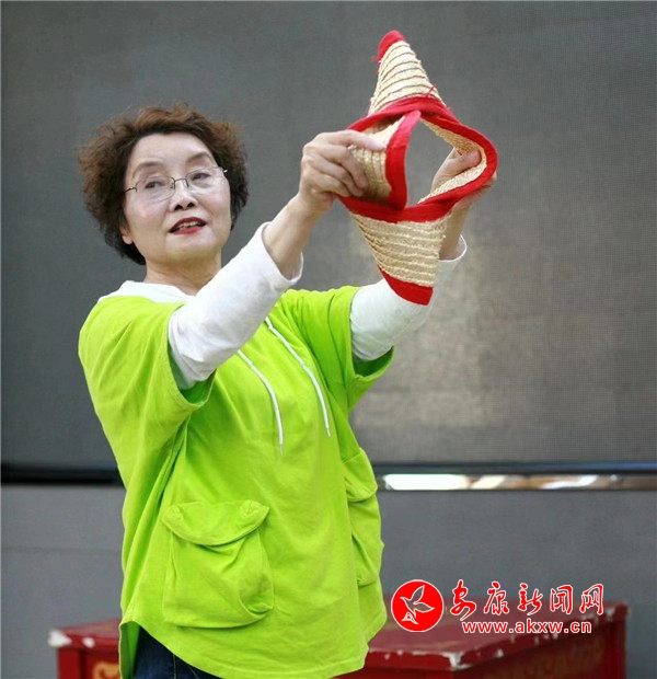 王秋嬋老師主講了小場子的藝術特征、小場子基本動作和風格組合,并輔導學員練習掌握基本技巧和舞蹈組合。學員們學習興趣很濃,跟著王老師學表演技巧、學編草帽花……學術大廳里笑聲掌聲不斷,學員們學藝互勉場面生動熱鬧。