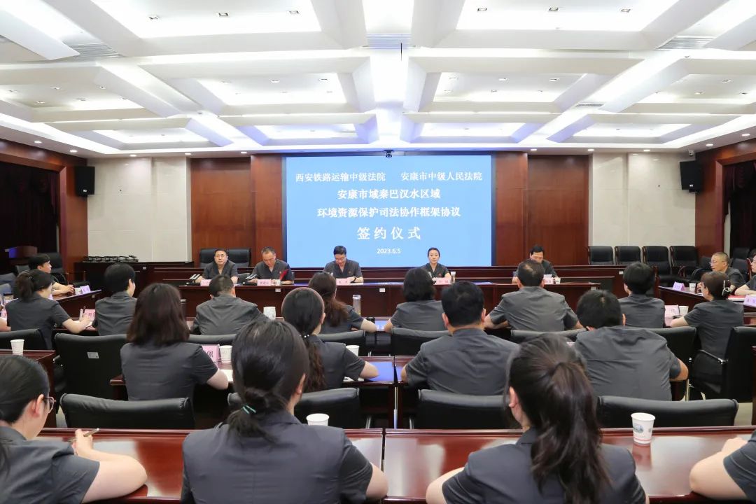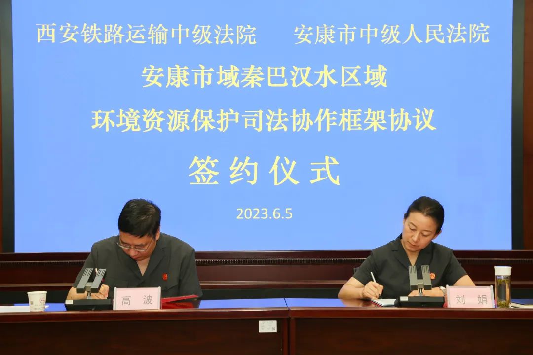 6月5日,安康市中級人民法院攜手西安鐵路運輸中級法院,舉行《安康市域秦巴漢水區域環境資源保護司法協作框架協議》簽約儀式,共同擘畫建設秦巴漢水生態安全屏障“同心圓”。