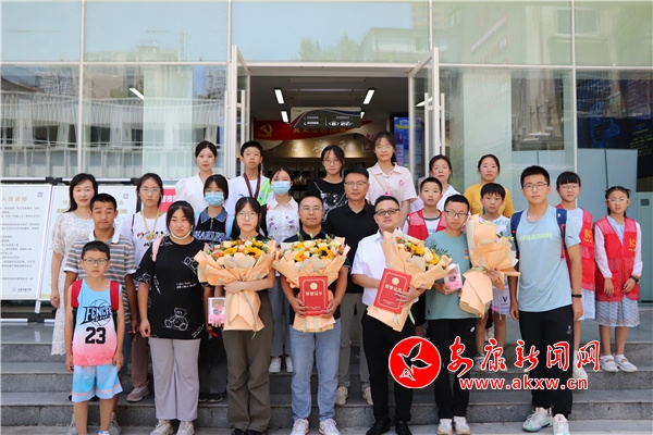 活動(dòng)伊始,圖書(shū)館向張昕楠、吳欣燃兩位優(yōu)秀學(xué)子獻(xiàn)花、贈(zèng)送讀書(shū)卡感謝他們的到來(lái),并祝賀他們?nèi)〉脙?yōu)異的成績(jī)。