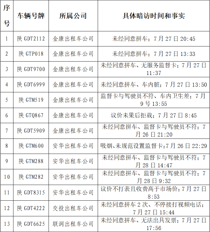 市交通運輸局將暗訪結果與日常營運情況相結合,對營運規范的20名出租車駕駛員予以通報表彰,對13名“差”格次車輛駕駛員進行通報批評。