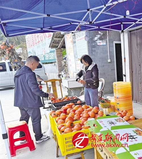 游客在城關鎮絲銀壩村選購柿子 kSt安康新聞網