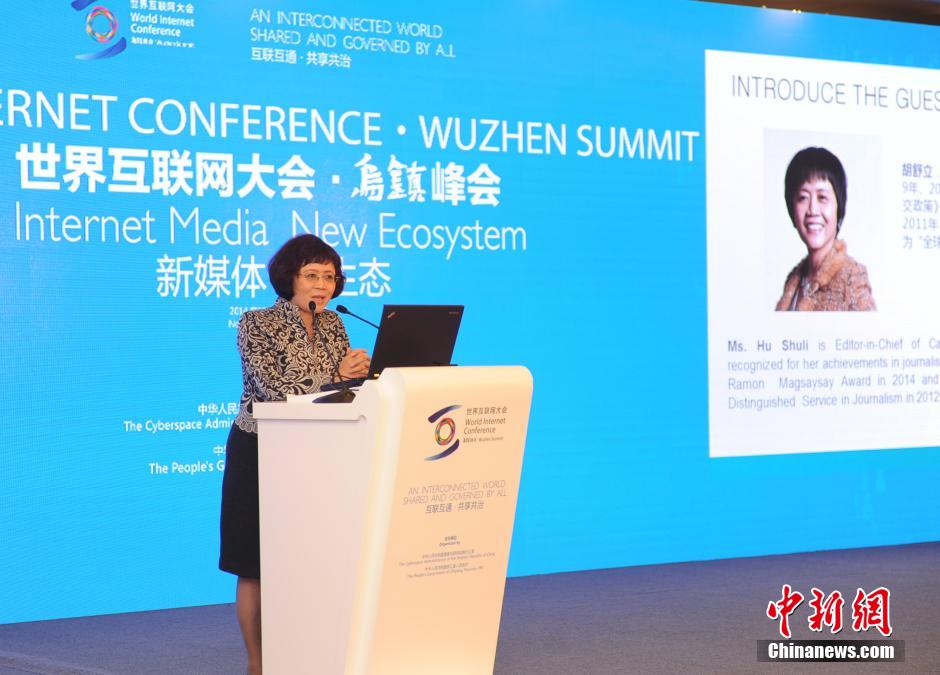 11月19日,財(cái)新傳媒總編輯胡舒立在烏鎮(zhèn)舉行的首屆世界互聯(lián)網(wǎng)大會(huì)新媒體分論壇上發(fā)言。當(dāng)天,世界互聯(lián)網(wǎng)大會(huì)在浙江烏鎮(zhèn)拉開(kāi)帷幕。 中新社發(fā) 李晨韻 攝aa5安康新聞網(wǎng)