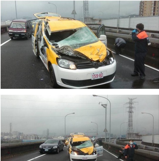 據(jù)臺灣聯(lián)合新聞網(wǎng)2月4日報道,臺北市4日上午傳出復(fù)興航空民航機墜落河面的意外,一輛行駛于環(huán)東快速道路上的出租車,意外受到機翼波及,車上包括一名女乘客被送往臺北忠孝醫(yī)院救治。圖為飛機墜落時砸到了停在橋上的的士汽車。ep2安康新聞網(wǎng)
