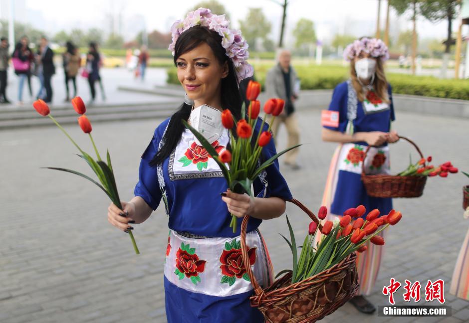 南京街頭靚麗“花仙子” 派發郁金香倡導綠色生活