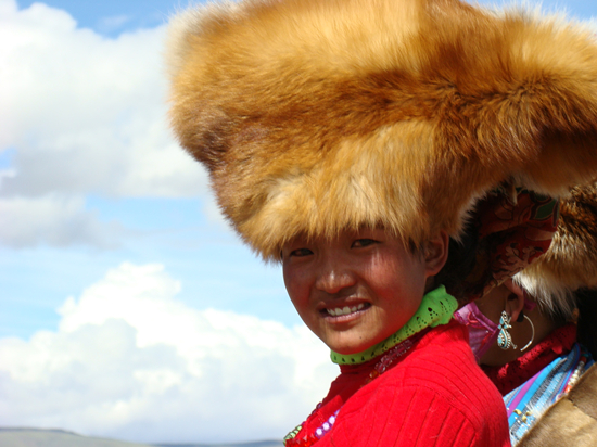 身著盛裝觀看賽馬的牧區(qū)姑娘
