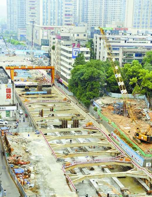 為加快施工進度,該項目六溝垅站在實施“半蓋挖”改“明挖”方案后,順利攻克長沙市最復雜交通疏解和西側鋪蓋系統的“巴掌空間”作業環境,確保車站如期封頂。