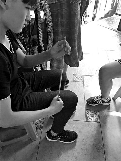 “怎么管你們的?”學(xué)生們指了指鋼琴臺(tái)上的三把戒尺,“不聽(tīng)話(huà)就打”,記者問(wèn)了五個(gè)學(xué)生,都挨過(guò)戒尺,“上課走神了,所以被打”“說(shuō)話(huà)聲音太大,打”“有時(shí)黃校冷不丁地突然就上來(lái)了”。學(xué)生們說(shuō),有一位姓黃的校長(zhǎng)最能管得住他們,“他打得最厲害”。