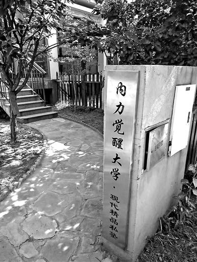 在一樓通往二樓的樓梯拐角處,能清楚地看到內(nèi)力覺(jué)醒大學(xué)精品私塾辦學(xué)模式的牌子“軍事化管理、一束花教育、自主式學(xué)習(xí)、艱苦化生活、淘汰式選擇、歷史化熏陶、百家式講課、行走化風(fēng)格、個(gè)性化發(fā)展、合并式內(nèi)容”。文/本報(bào)記者 林艷 武文娟