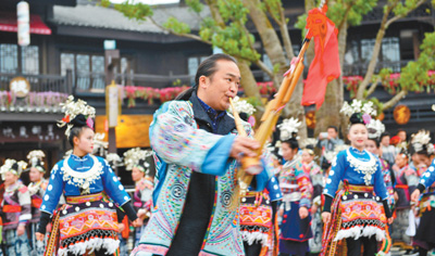12月2日,貴州省黔東南苗族侗族自治州丹寨縣舉行盛大的苗族服飾展演巡游活動,迎接一年一度的苗族祭尤節,全縣8個不同支系的苗族同胞身著盛裝,齊聚丹寨,向海內外游客展示苗族盛裝服飾魅力。“祭尤節”苗語叫“農尤”,“農”意為吃或祭,“尤”為人名,即苗族九黎部落的首領蚩尤。“祭尤節”在2008年3月入選貴州省第二批非物質文化遺產名錄。ach安康新聞網