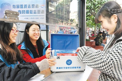 12月10日,上海首個(gè)“學(xué)雷鋒志愿者服務(wù)站”亮相南京路步行街。圖為兩位志愿者在為路人提供服務(wù)。z2i安康新聞網(wǎng)