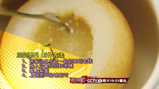 除了煮梨水,上鍋蒸也是非常好的方法。把梨從頂部切開后去核,放入少量川貝和冰糖,上鍋蒸30分鐘。出鍋后梨汁梨肉一起吃,化痰止咳效果也很好。但一定要注意,無論是川貝煮梨水還是川貝蒸梨,只對陰虛肺熱和風燥傷肺引起的干咳治療效果明顯。同時專家也提醒大家,食療最多三日,如果咳嗽持續沒有緩解,還是要及時就醫,以免耽誤病情。(孝金波、王亞靜 整理)