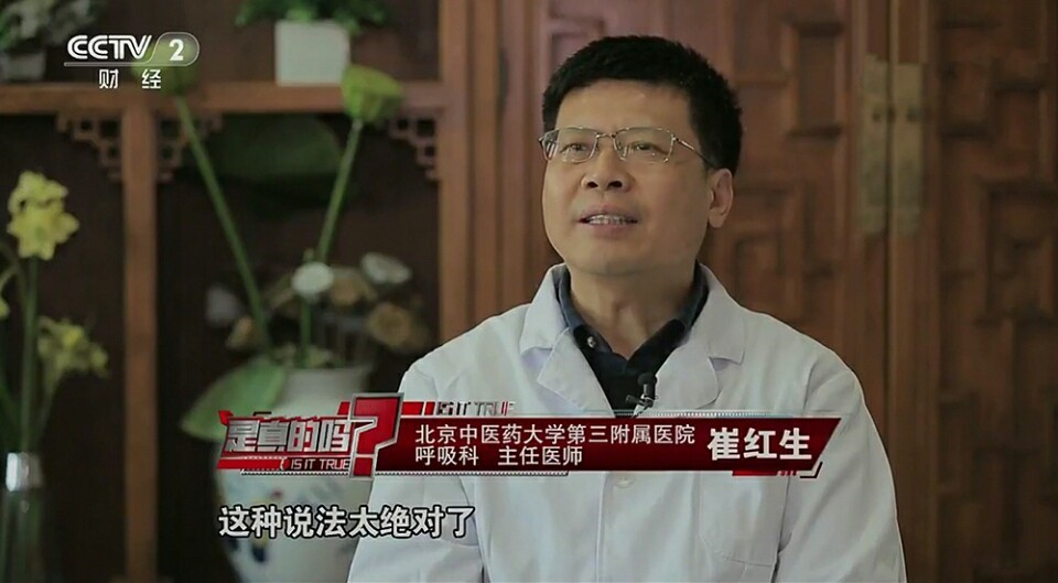 北京中醫藥大學第三附屬醫院呼吸科主任醫師崔紅生表示:“這種說法太絕對了,是假的。”