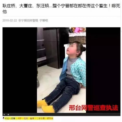 多地網警辟謠稱,該事件并非發生在當地。同時,有媒體稱,此系貴州貴陽的事件。2月24日,貴陽警方回應“求真”欄目稱“暫未找到視頻中的當事人”。2月26日,河北省邢臺外宣辦官微通報:微信公眾號“臨城本地通”和“寧晉吧”的運營者邢臺市新河縣人王某,在明知該視頻發生地并非邢臺本地的情況下,為了提高公眾號點擊率、擴大影響,在視頻標題中加入臨城縣、寧晉縣地名,故意使用“臨城鎮、東鎮、黑城、整個臨城都在傳”,“耿莊橋、大曹莊、東汪鎮,整個寧晉都在傳”等詞匯為標題,在其運營的“臨城本地通”“寧晉吧”兩個微信公眾號上發布該虐童視頻,造成大量群眾誤解,紛紛在網上進行轉載,要求邢臺警方調查核實并嚴肅處理虐童當事人。根據《治安管理處罰法》相關規定,新河縣公安局對王某依法作出行政拘留五日的處罰。