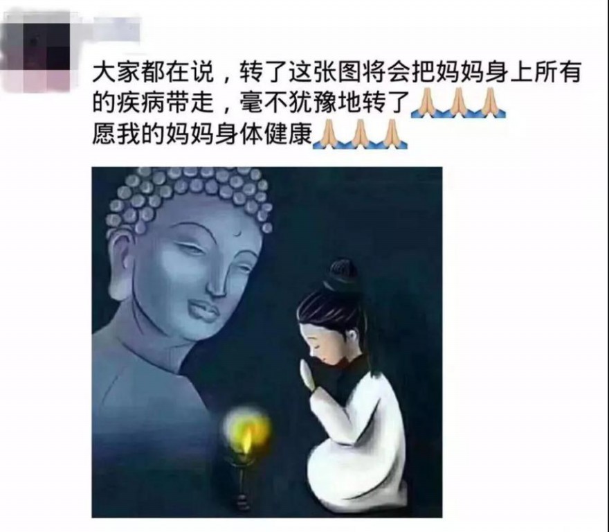 “愿母親幸福安康”、“據說這張圖會把爸媽身上的疾病帶走”……燭光下,白衣束發人士單手合十,對著慈眉善目的“菩薩”虔誠跪拜,春節假期,這幅“地藏菩薩圖”在朋友圈熱傳,不少網友轉發并配上祝福家人的文字。