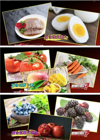 李纓指出:“首先,維生素A能維持正常的暗適應能力,一般在動物的肝臟、蛋黃等食物中含有。其次,是胡蘿卜素,在綠色以及紅黃色的蔬菜水果中含有。第三抗氧化物質,在藍色、紅色、紫色的水果蔬菜中含量非常豐富。總之,均衡的營養是我們保護眼睛健康的基礎。”