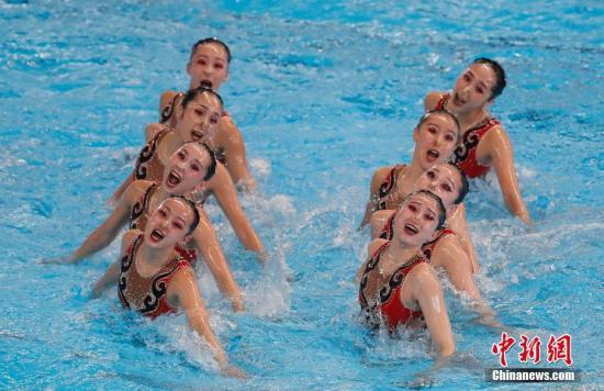 圖片說明:在8月29日下午結束的雅加達亞運會花樣游泳集體自由自選比賽中,中國隊憑借《鳳舞國粹》的出色發揮,奪得金牌。中新社記者 杜洋攝
