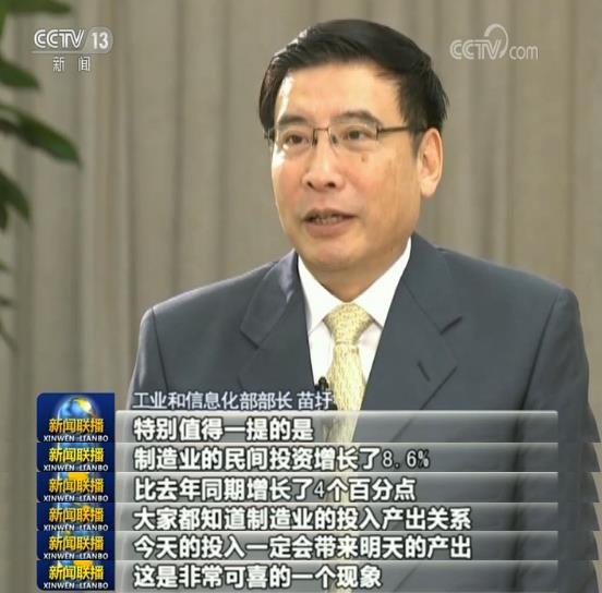 日前,工業和信息化部部長苗圩接受本臺記者專訪表示,今年前八個月工業經濟運行穩定,制造業亮點頗多,下一步將切實降低中小企業負擔,促進金融支持實體經濟的發展。