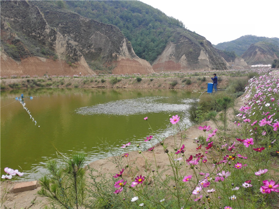 余家坪鎮(zhèn)郝家川村淡水養(yǎng)殖場,鄉(xiāng)村美如畫。(供圖 子長縣委宣傳部)