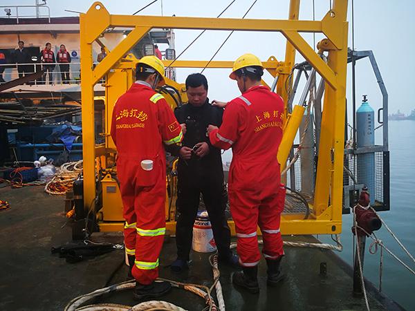交通運輸部專業潛水員輪番下水,連夜作戰。
