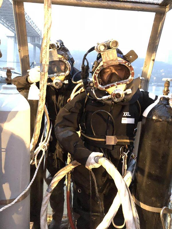 超過60米水深,就需要使用專業氦氧潛水技術。在潛水前需要根據實際水深配置潛水員呼吸用的氦氣和氧氣,再由專業潛水員開展水下工作。在氦氧混合氣體潛水作業條件下,為保障潛水員的安全,每次作業時間最長只有35分鐘左右。作業完畢后,潛水員需要在上浮過程中逐步減壓兩個半小時,出水后還要再進入減壓艙減壓3小時。