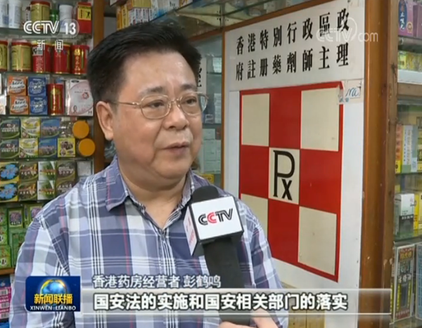 香港藥房經營者 彭鶴鳴:國安法的實施和國安相關部門的落實,一步一步加強了工作的實施推進,我們看了很高興,對整個社會來說就好像陽光一樣,香港市民對未來加強了信心。