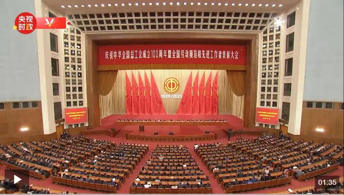 △視頻:慶祝中華全國總工會成立100周年暨全國勞動模范和先進工作者表彰大會隆重舉行