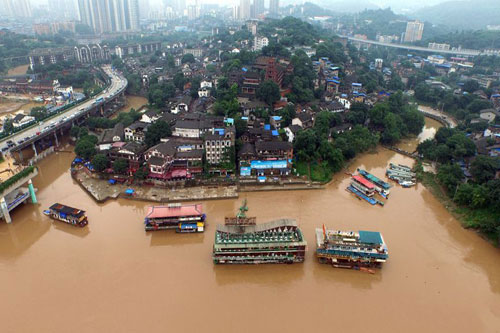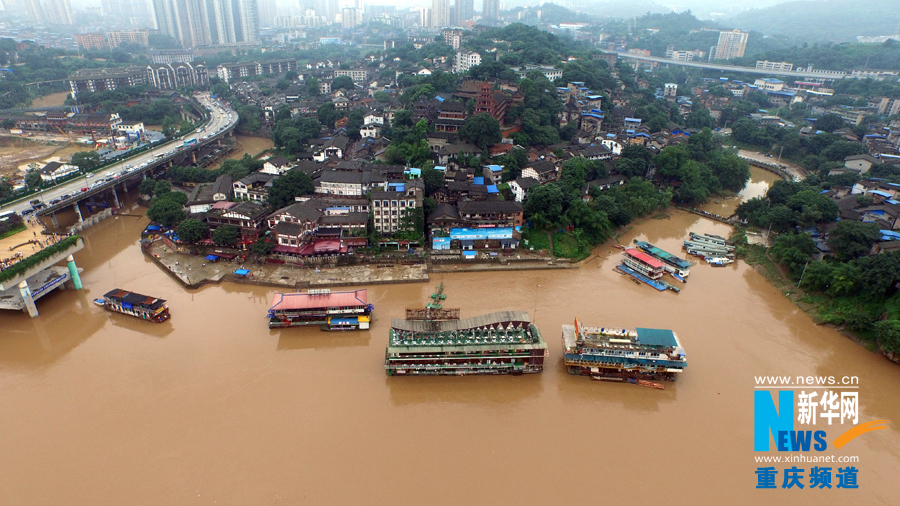 7月1日,今年長江、嘉陵江最大洪峰過境后的重慶朝天門碼頭。 本組圖片由新華網新聞無人機隊拍攝新華網重慶頻道7月1日電 受四川境內強降雨影響,重慶長江、嘉陵江……