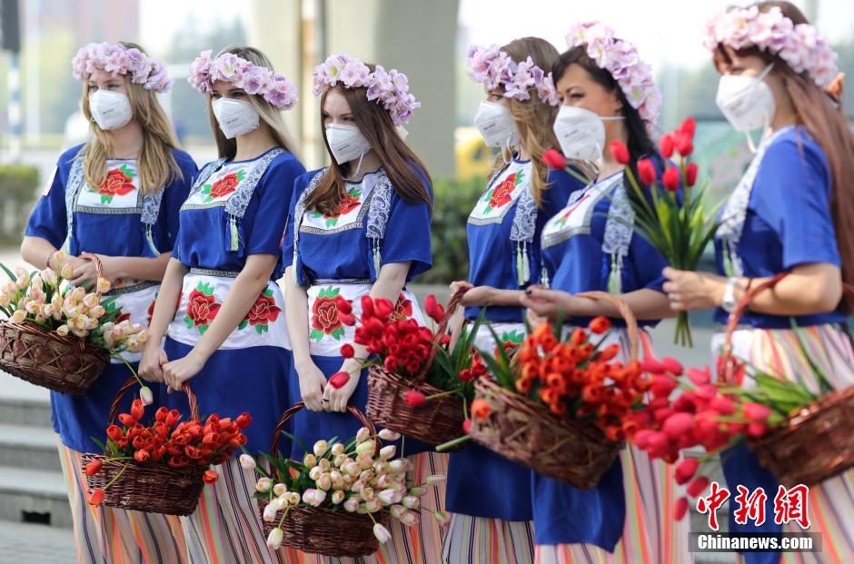 南京街頭靚麗“花仙子” 派發郁金香倡導綠色生活