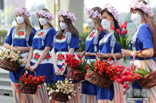 南京“花仙子” 派發郁金香 倡導綠色生活