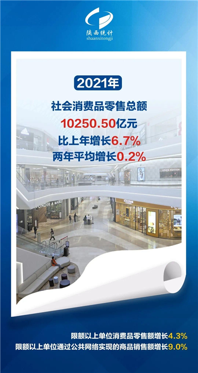 消費市場平穩恢復,2021年,全省實現社會消費品零售總額10250.50億元,同比增長6.7%,兩年平均增長0.2%。其中,新興消費穩定增長,全省限額以上單位通過公共網絡實現的商品銷售785.57億元,同比增長9.0%,兩年平均增長18.9%。