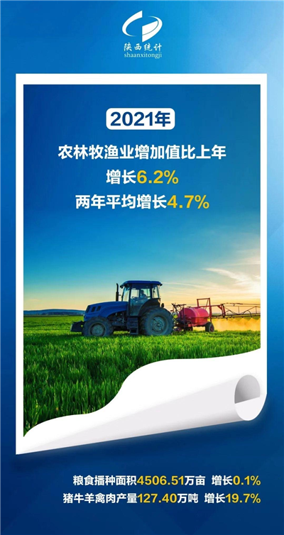 農業生產穩定,2021年,全省農林牧漁業增加值同比增長6.2%,兩年平均增長4.7%;糧食播種面積4506.51萬畝,同比增長0.1%;蔬菜及食用菌產量2012.82萬噸,同比增長2.8%;園林水果1896.46萬噸,同比增長4.9%;豬牛羊禽肉產量127.40萬噸,同比增長19.7%。