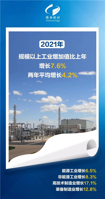 工業生產穩中加固,2021年,全省規模以上工業增加值同比增長7.6%,兩年平均增長4.2%。其中,高技術制造業增加值同比增長17.1%,兩年平均增長16.6%;裝備制造業同比增長12.8%,兩年平均增長13.7%,均好于全部工業平均水平。從主要行業看,規上能源工業增加值同比增長6.5%,兩年平均增長4.4%;非能源工業增加值同比增長8.3%,兩年平均增長4.0%。其中,電氣機械和器材制造業同比增長23.8%,兩年平均增長20.1%;計算機、通信和其他電子設備制造業同比增長20.1%,兩年平均增長28.5%;汽車制造業同比增長2.7%,兩年平均增長5.0%。