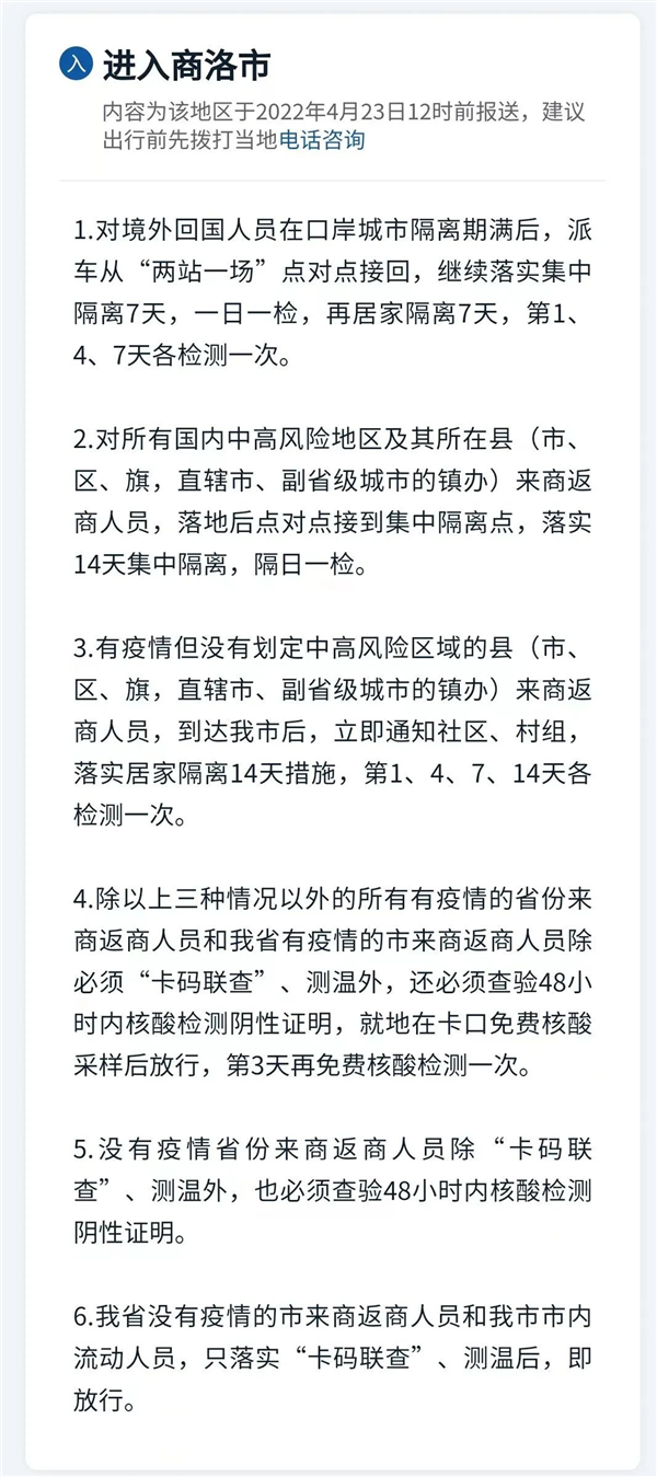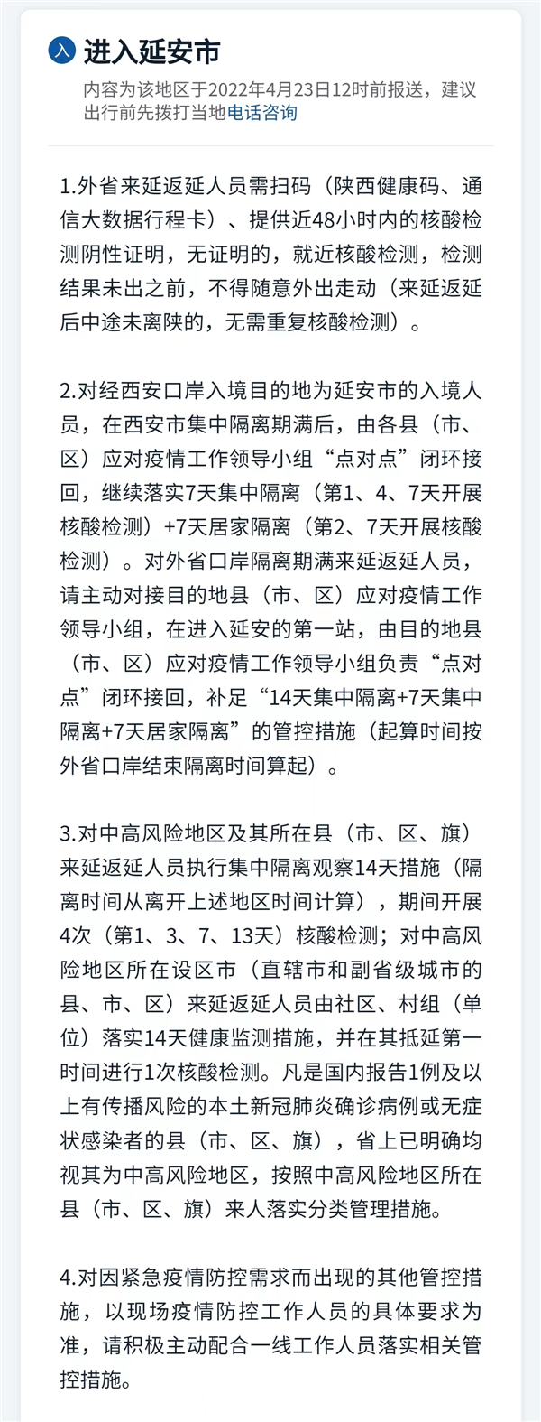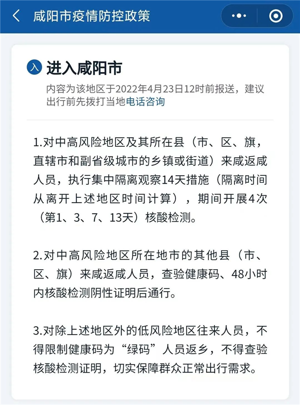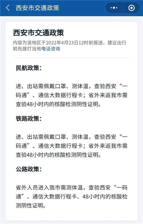 陜西省內各市最新的疫情防控政策來了!(截至4月23日)建議出行先撥打當地電話咨詢: