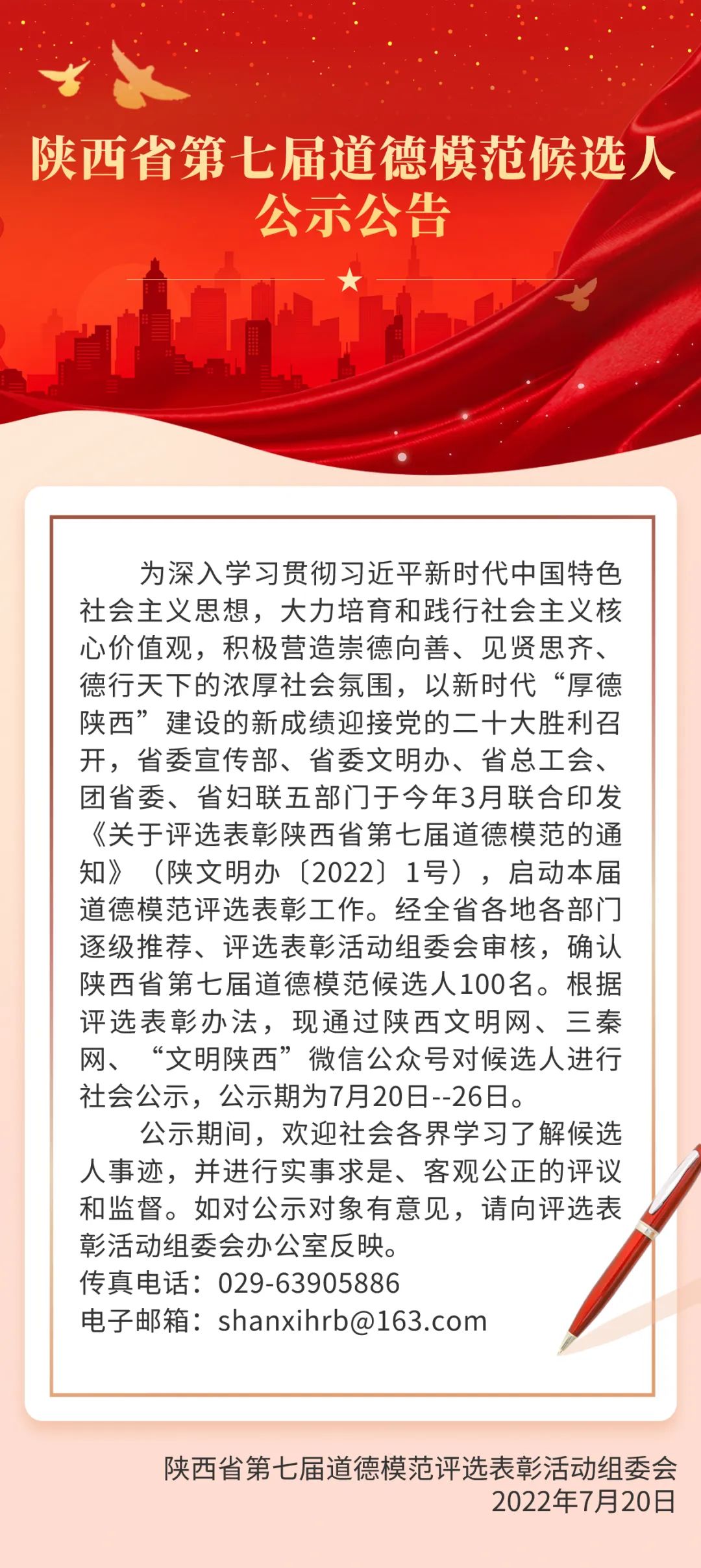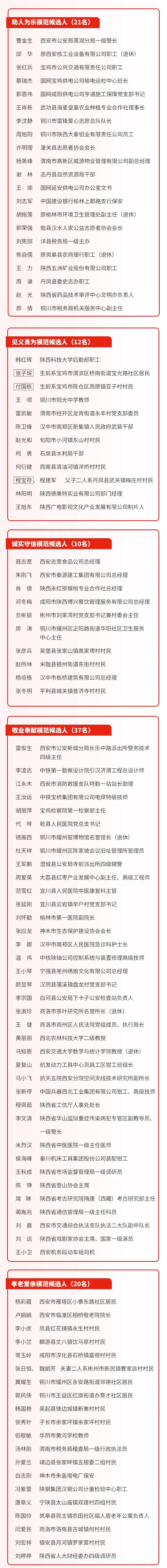 陜西省第七屆道德模范候選人公示公告