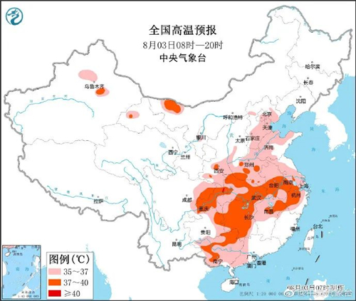 2022年8月3日10時00分,陜西省氣象臺發(fā)布高溫黃色預警 :受大陸高壓影響,3日榆林北部、關中大部、陜南大部地方有35℃以上的高溫天氣,其中咸陽南部、楊凌、西安大部、渭南南部、漢中東部、安康部分地方可達37℃以上,安康平原地區(qū)局地可達40℃以上。