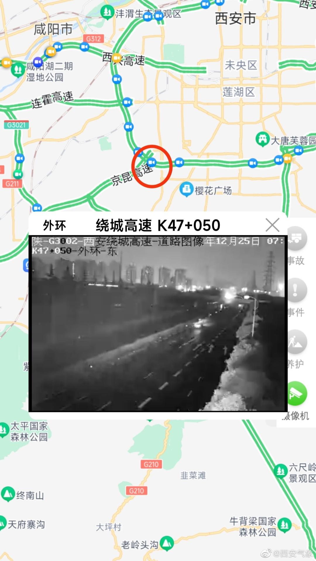 據西安氣象最新預報,配合雷達實況選取了西三環環城高速監控視頻可以看到已經在下了,截圖不太明顯;西漢、藍商高速已經在下并且有些路段有積雪,今日出行的小伙伴除了防寒保暖,還請注意道路安全。