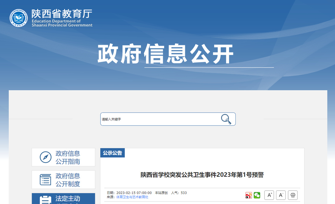 新冠感染:監測數據及專項調查數據顯示,陜西省城市和農村均已過新冠感染高峰,已到流行末期,但隨著新型變異毒株的出現及出入境人員的增加,各級各類學校仍需做好防控工作。