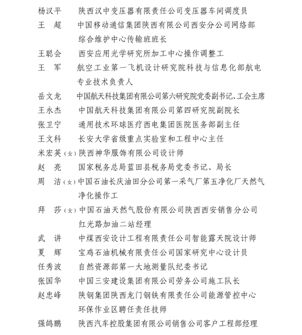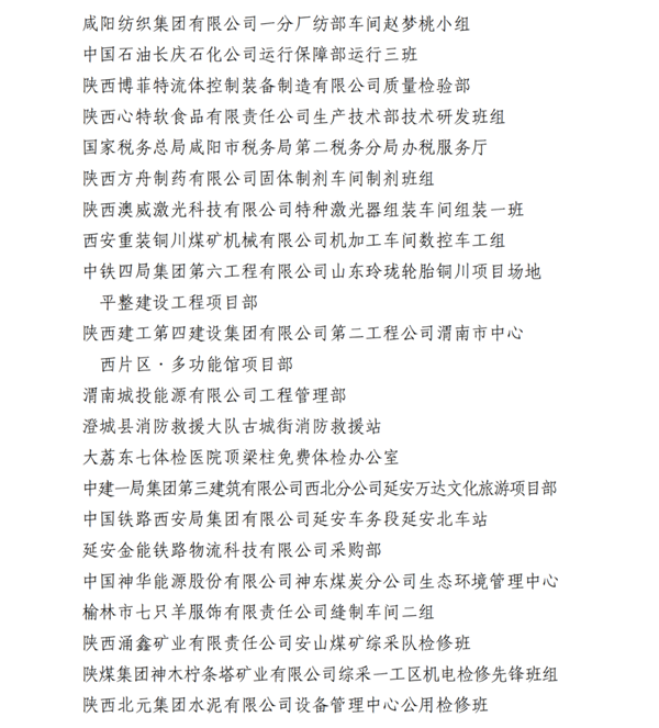 2022年以來,全省廣大勞動者以習(xí)近平新時代中國特色社會主義思想為指導(dǎo),深入貫徹黨的二十大精神和習(xí)近平總書記來陜考察重要講話重要指示,貫徹落實習(xí)近平總書記致首屆大國工匠創(chuàng)新交流大會賀信精神,聚焦一體落實 “五個扎實”“五項要求”,在各個領(lǐng)域、各條戰(zhàn)線勇立時代潮頭、積極擔當作為,涌現(xiàn)出一大批銳意進取、團結(jié)奮斗,頑強拼搏、甘于奉獻的先進集體和個人。