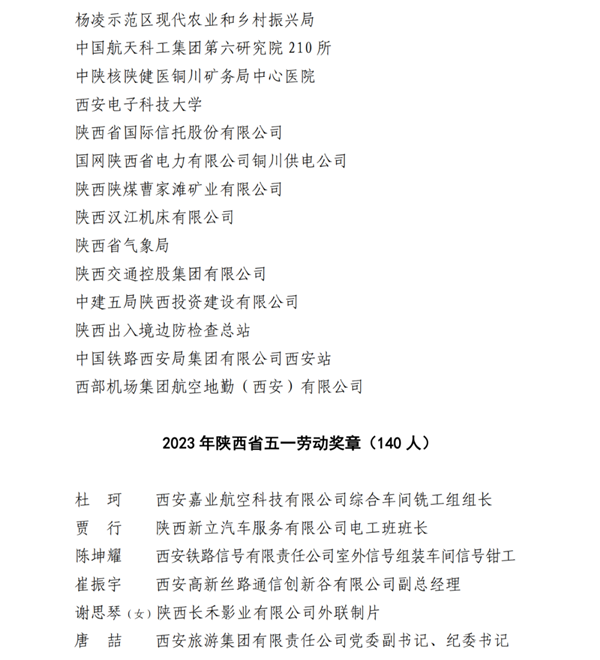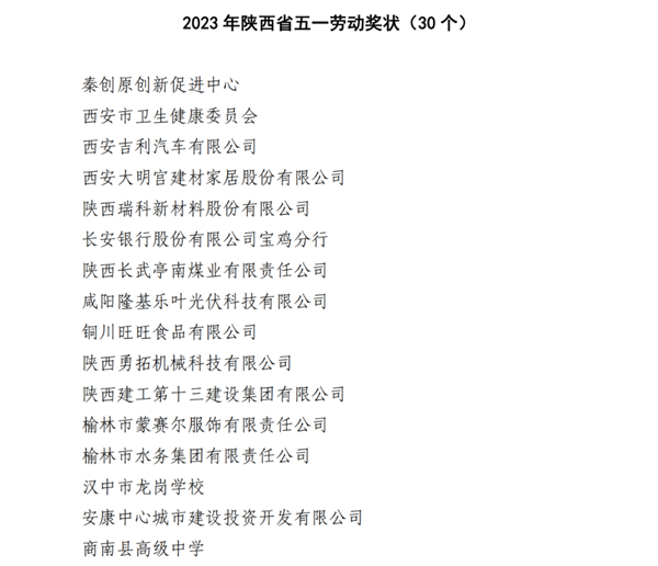 關(guān)于表彰2023年陜西省五一勞動獎和