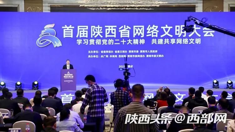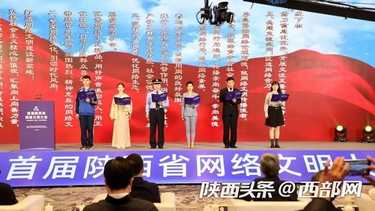 5月30日,首屆陜西省網絡文明大會在渭南召開。會上,陜西好青年代表、陜西省崗位學雷鋒標兵李甜甜,中國好人、全國向上向善好青年韓紅輝,陜西文旅推薦使者、陜西好網民馮佳晨,中國好人、陜西省道德模范曹金生,陜西好網民代表、西安電子科技大學學生王冠玉,渭南市瑞泉中學學生云漢宸等共同發布《共建網絡文明倡議書》。