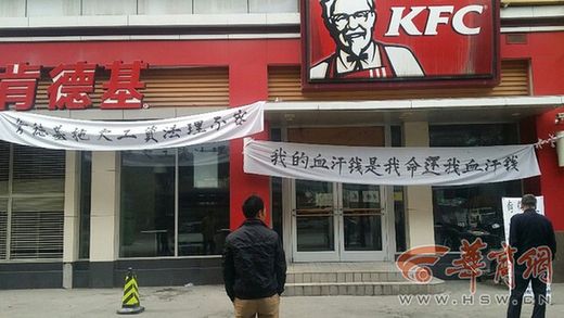 西安肯德基多家加盟店停業 員工掛橫幅討工資
