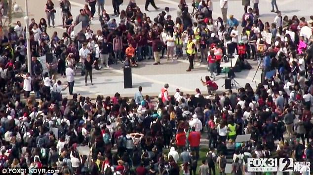 周二,來自丹佛地區數百名高中生走出校門,抗議美國廢除移民特別保護項目“童年抵美者暫緩遣返”(DACA)計劃。當天是美國學生返校第一天。(圖片來源:每日郵報)