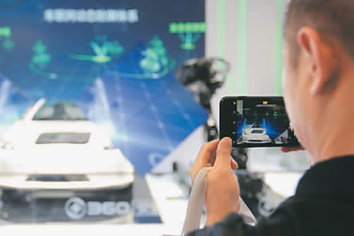 圖三為在上海舉行的2017年網絡安全博覽會暨網絡安全成就展上,一名觀眾在拍攝展臺上的網絡安全概念車。Dm8安康新聞網
