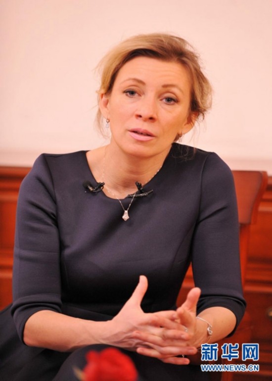 俄羅斯外交部新聞司司長、新聞發言人扎哈羅娃接受采訪。新華網發 徐昕攝
